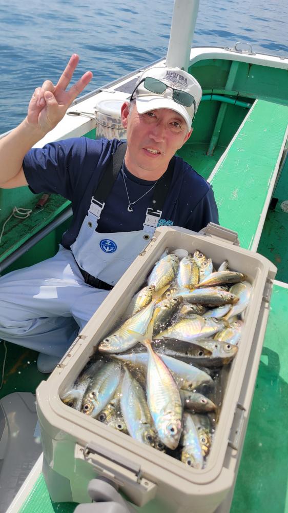 なんだか今日ゎ水色が澄んだのかピッカピカアジさん少しご機嫌斜めで↘️ですが、皆さんのコマセワークで船長助かりました(=^ェ^=)